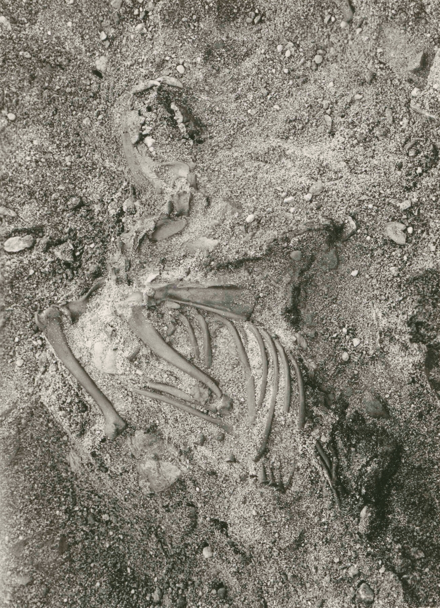 Hundskelett i sydvästra delen av båtgraven.