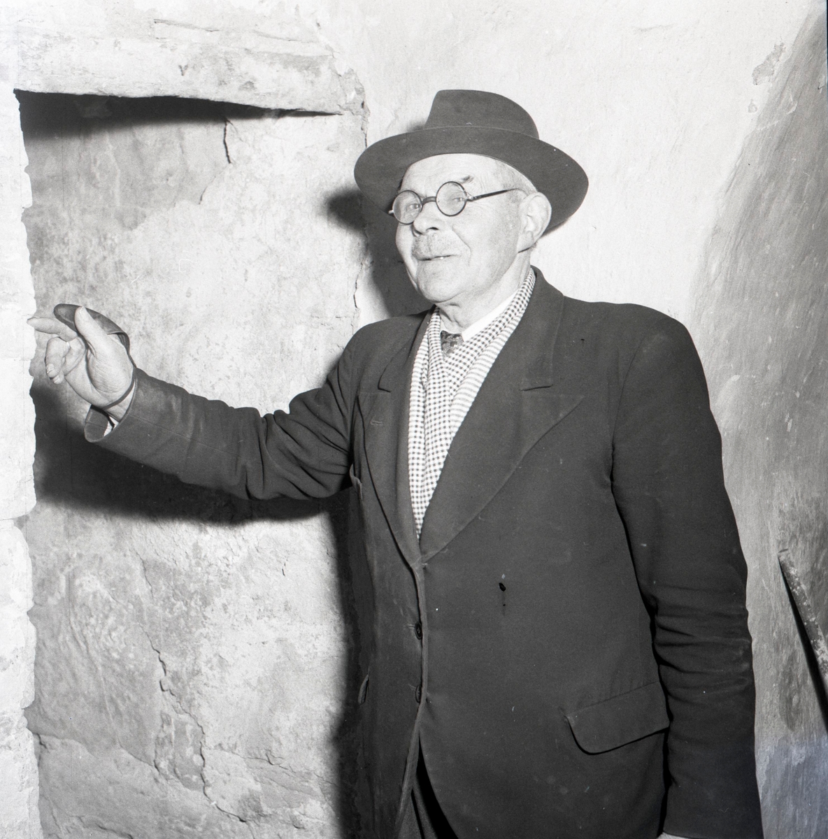 Bild på Kyrkvaktmästare Gustav Svensson som avgick den 1 november 1958.