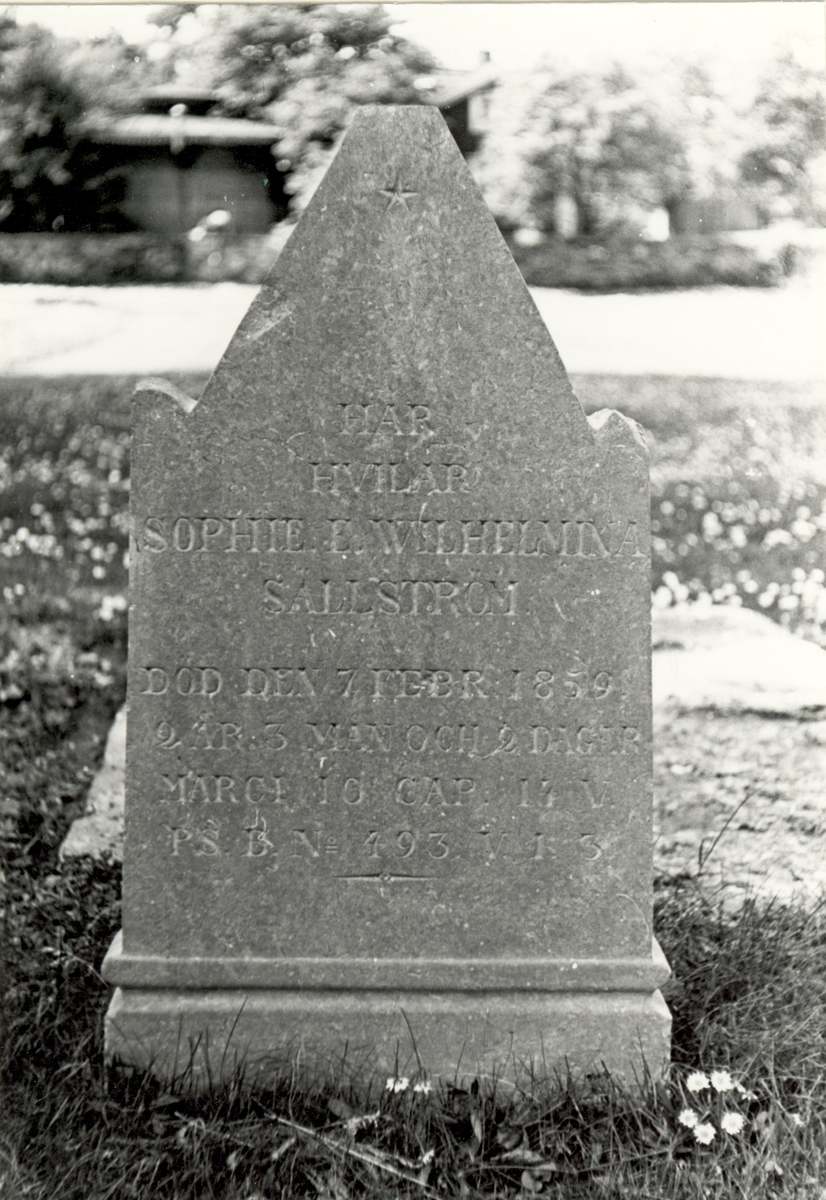 "Här hvilar Sophie E. Wilhelmina Sällström död den 7 febr 1859 2 år 3 mån och 2 dagar