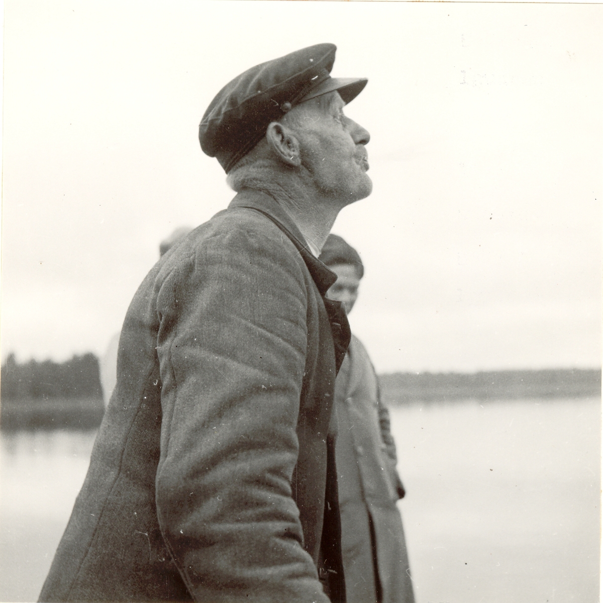 Löjfångst med silhåv i Allgunnen. Fiskaren sprutar ut brödsmulor över vattnet, sedan han sänkt ned håven.