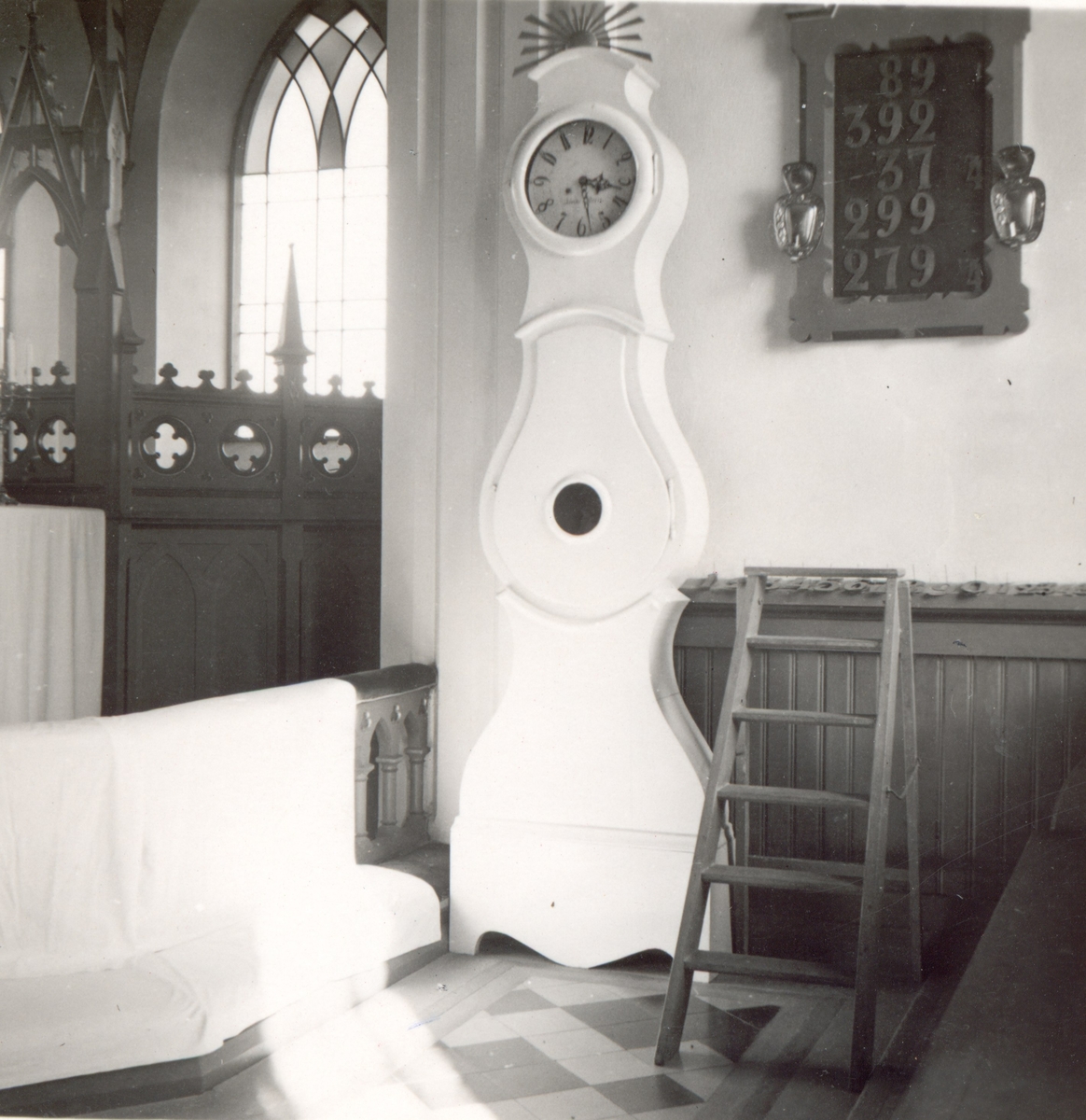 Interiör av Fagerhults kyrka. Golvur.