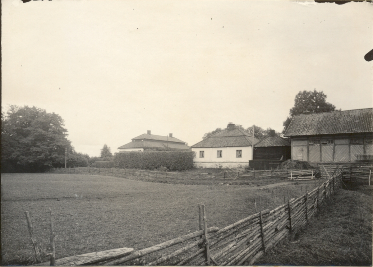 Toverums säteri. Mangården med från vänster huvudbyggningen, förvaltarflygel, avträde och uthuslänga.