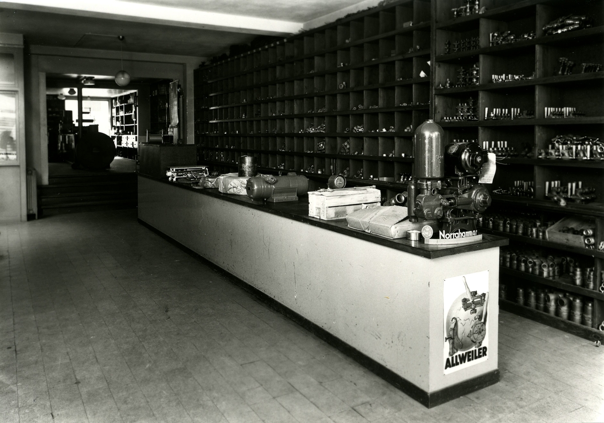 Butiksdisk och butikshylla i Kalmar Maskinaffär AB.