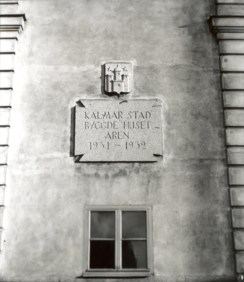 På Stagneliusskolans (Kalmar Högre Allmänna Läroverk) vägg.