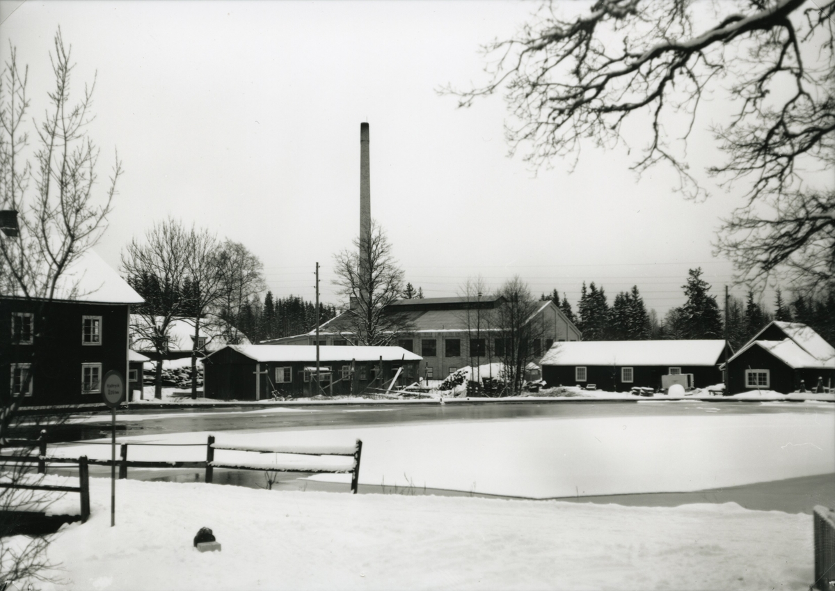 Björkshults glasbruk, dammen med anläggningen bakgrunden.