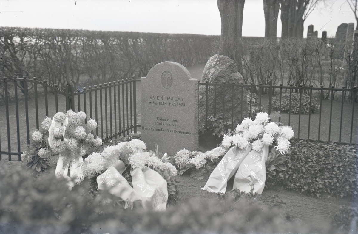 Blommorna och kransarna tyder på att bilden kan vara tagen 1934, i nära anslutning till begravningen.