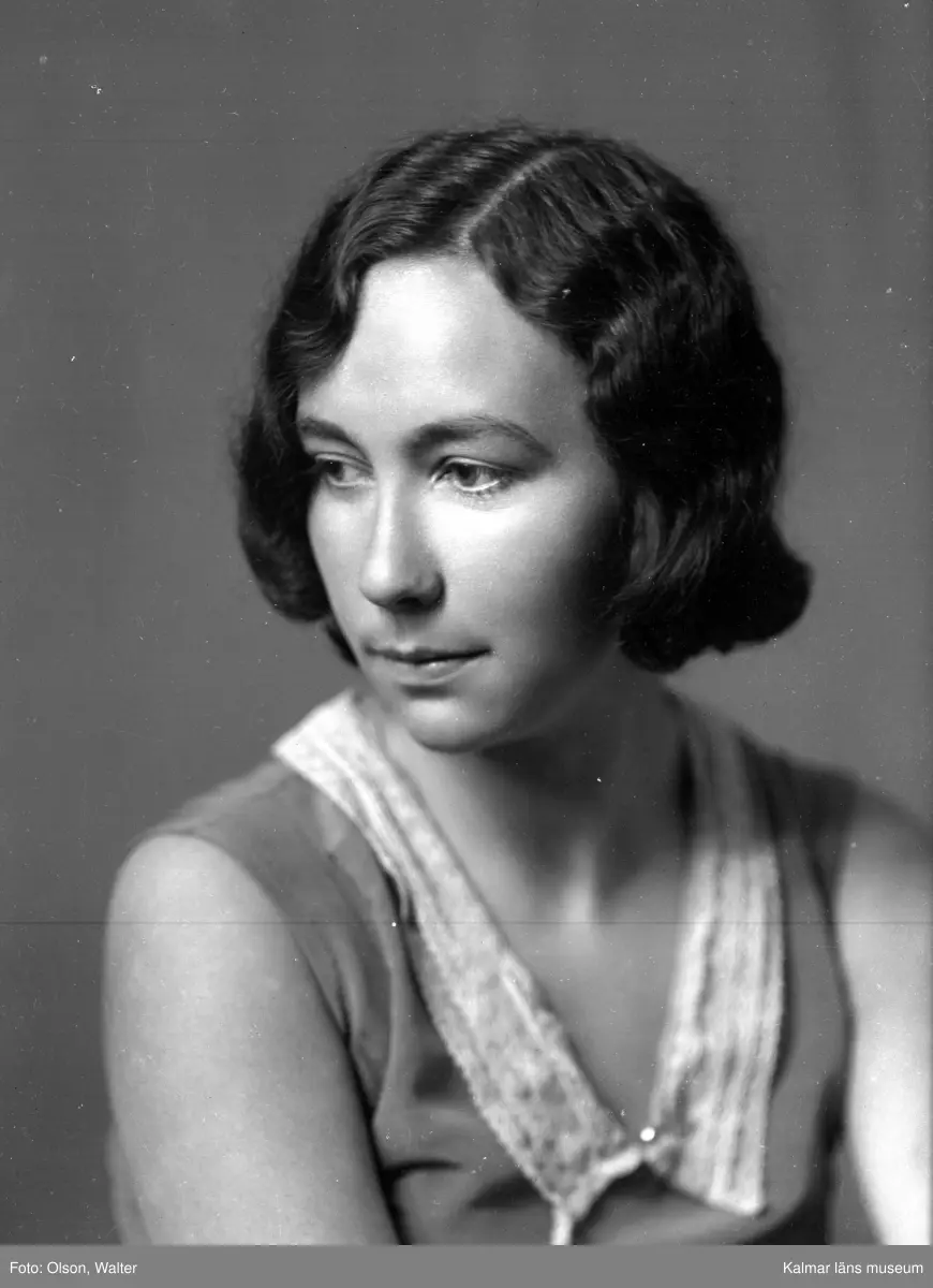 Ateljébild på en kvinna. Enligt Walter Olsons journal är bilden beställd av Nanna Lorentzon ifrån Sidenhuset i kalmar.