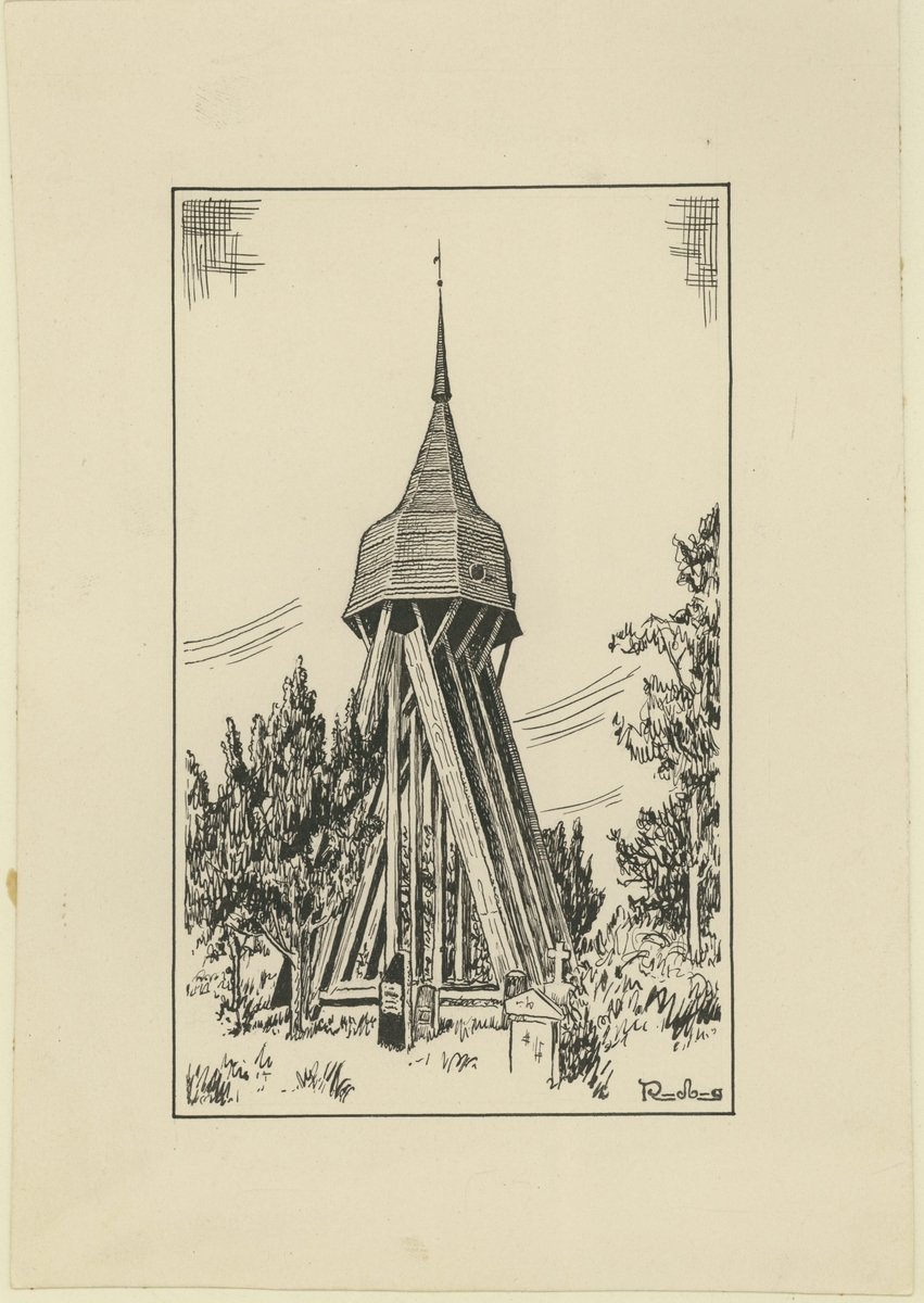 Torsås kyrka, Klockstapeln, teckning av Rydberg ca1928,