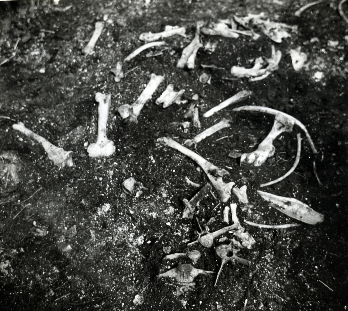 Foto från utgrävningen i Skedemosse. Benkoncentration.