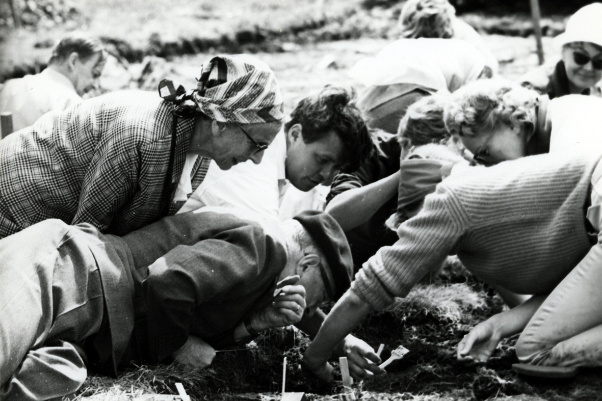 Kung Gustaf VI Adolf och Ulf Erik Hagberg under utgrävningarna av Skedemosse.