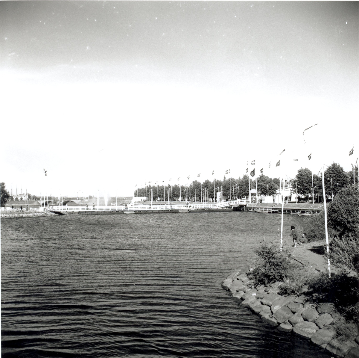 En bro som byggdes över Fredriksskanskanalen inför hantverksmässan 1947.