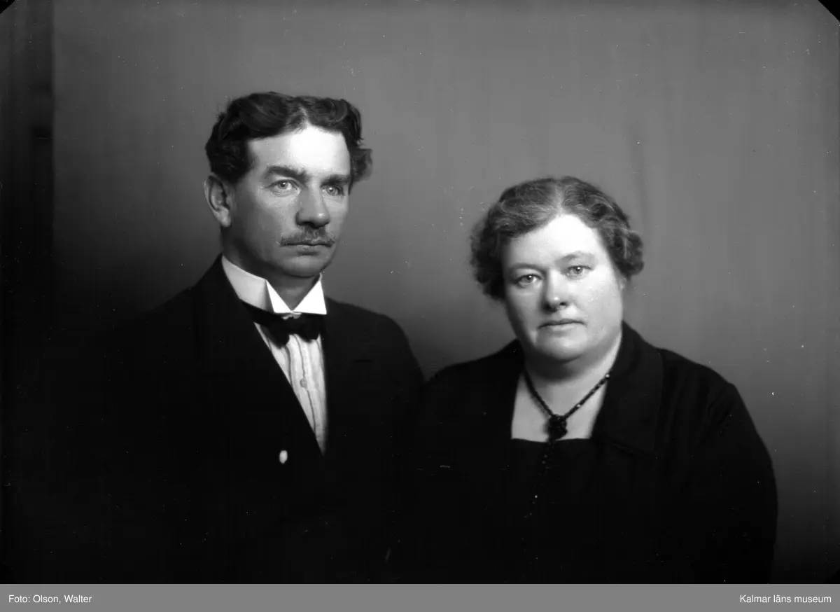 Ateljébild på ett par. Enligt Walter Olsons journal är bilden beställd av herr Emil Johansson ifrån Ljungbyholm.