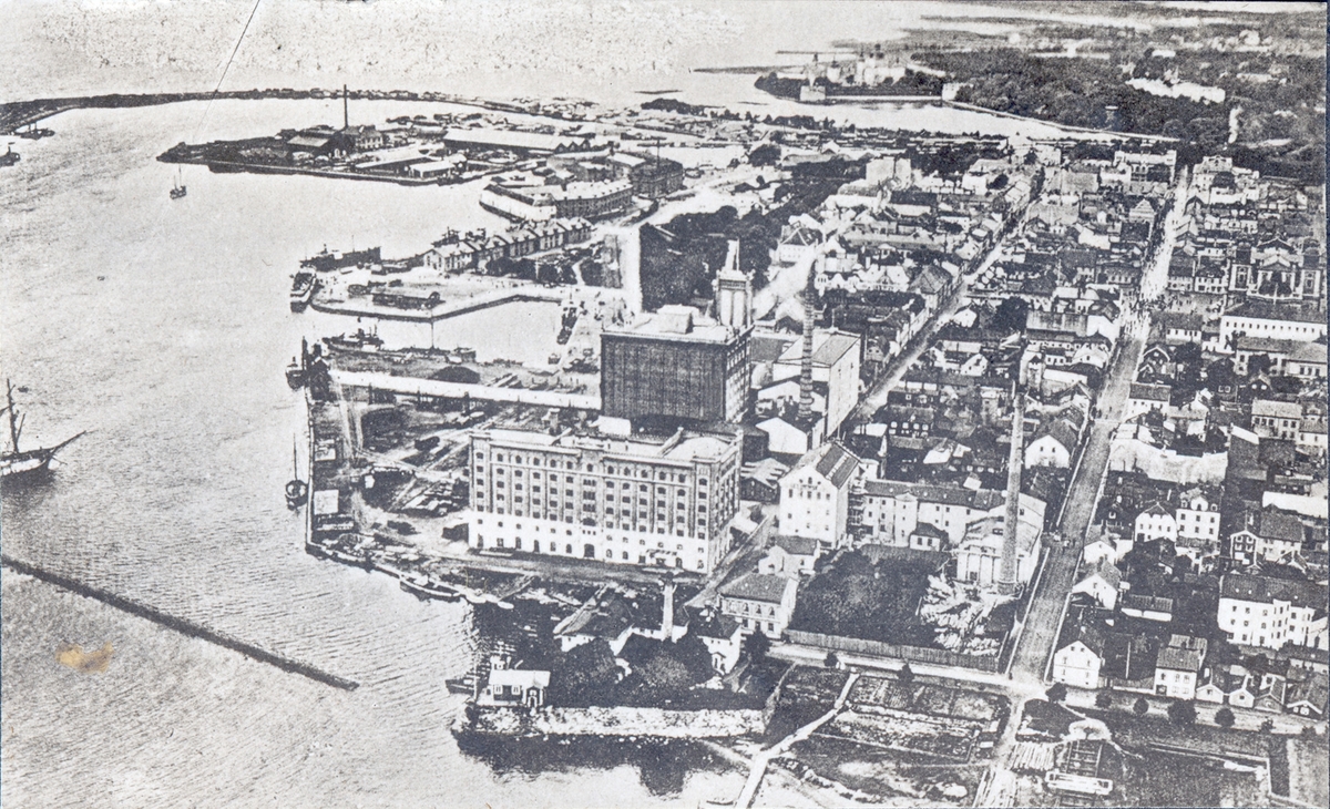 Fotot är ett av de äldsta flygfotografierna över Kalmar. Troligen är det taget från luftskeppet Bodensee då denna flög från Berlin till Stockholm år 1919. Ångkvarnen och Riskvarnen träder tydligt fram i mitten.