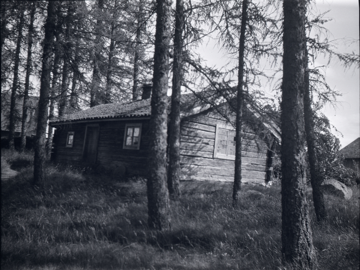 Holmestugan 1932. Stugan flyttades från torpet till Tuna gårds park i början av 1920-talet. Det står kvar där än idag.