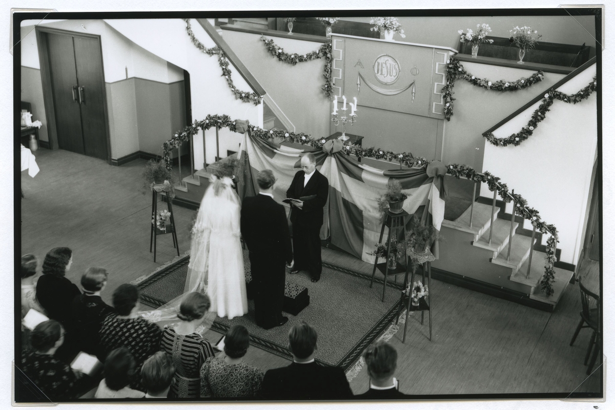 Brudpar med gäster på 1939-07-15.