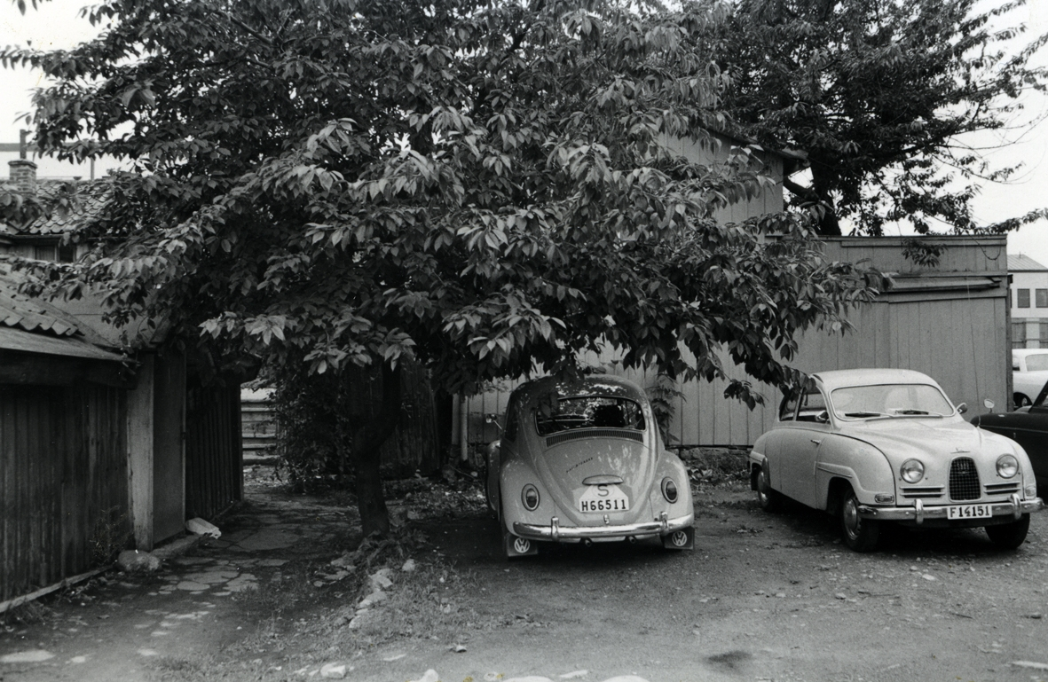 Tomten bakom Gesällen nr 14, Fiskaregatan 33. Till vänster i den ymniga grönskan skymtar Gesällen 12 och 11.