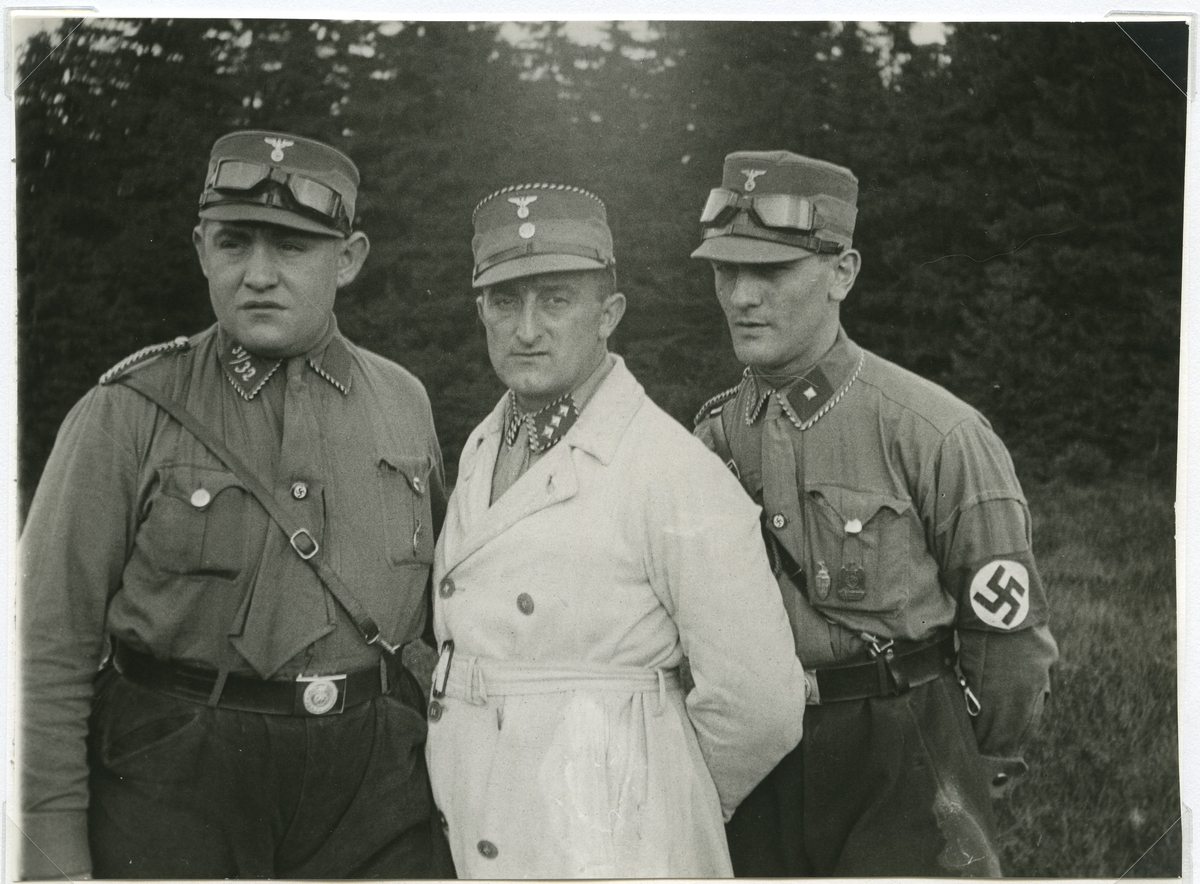 Tre SA-män i närheten av gravmonumentet vid Sommerbachskopf i Tyskland.