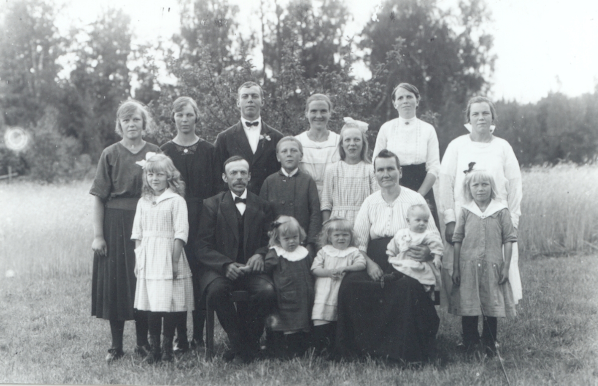 Makarna Karl och Alma Johansson fotograferade tillsammans med sina 13 barn.