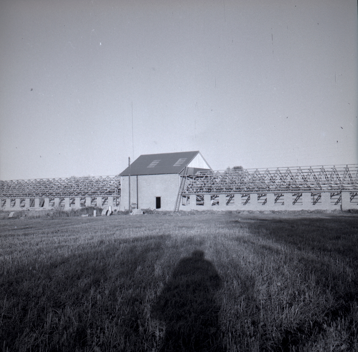Titel: Husbygge av vad som blev Thuressons hönsfarm i Gillsätra, Glömminge. Företaget grundades av Sigvard Thuresson 1950. Idag drivs det av sonen Agne Thuresson och Yvonne Rydberg.