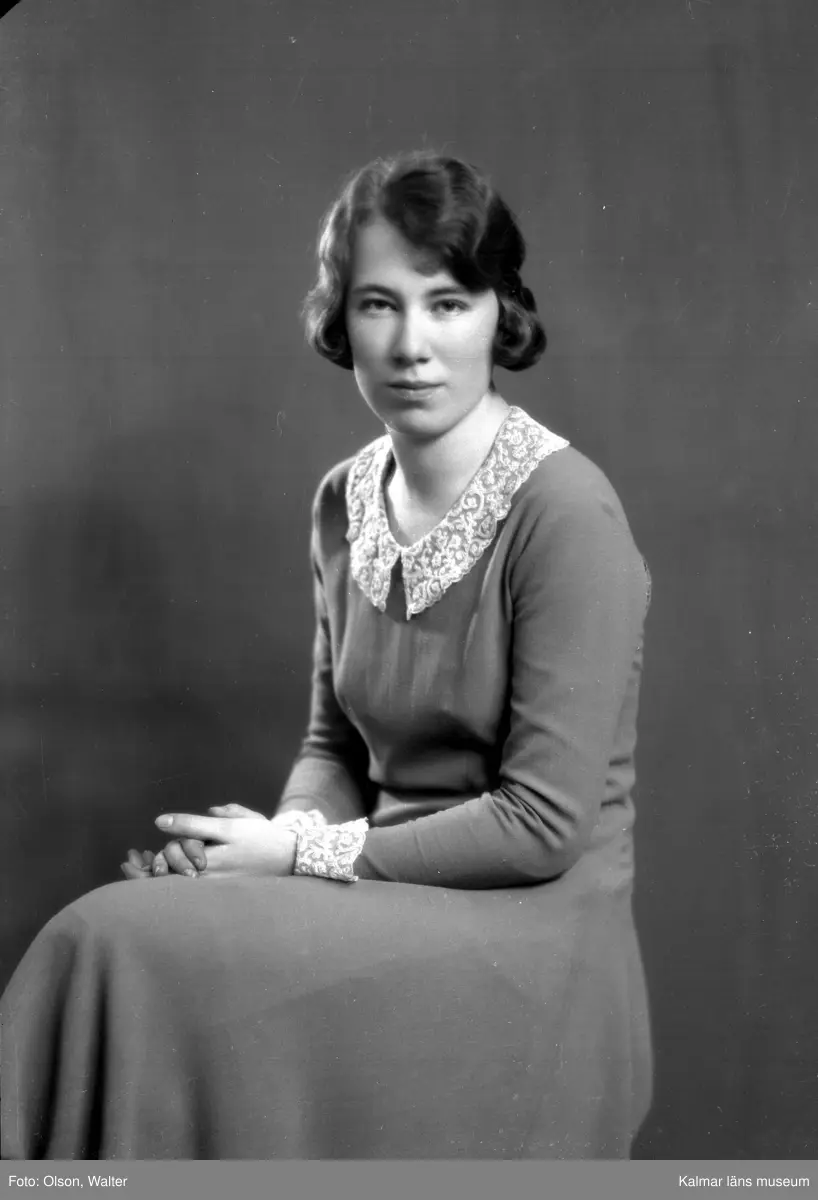 Ateljébild på en kvinna. Enligt Walter Olsons journal är bilden beställd av fröken Birgit Ek ifrån Södra Långgatan 34.