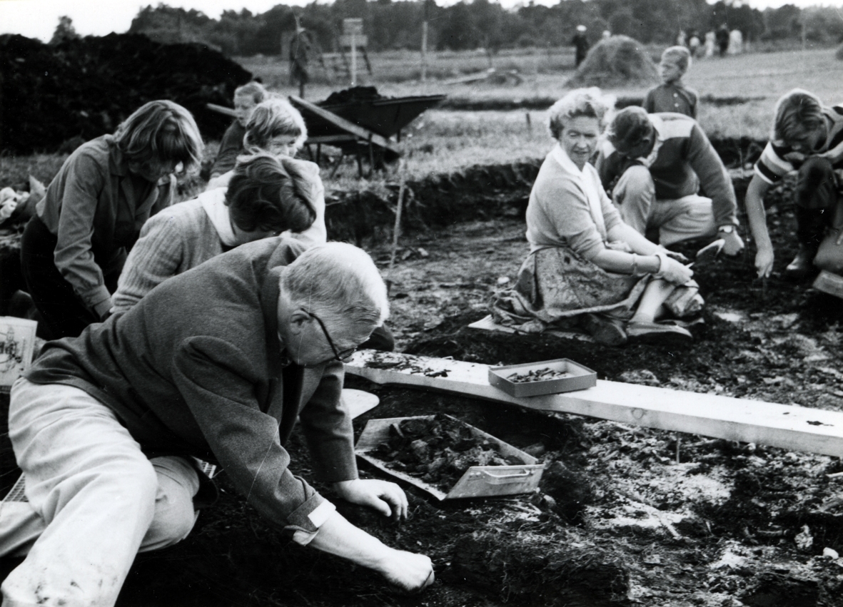 Kung Gustaf VI Adolf, som var en kunnig amatörarkeolog, deltog vid utgrävningarna av Skedemosse.