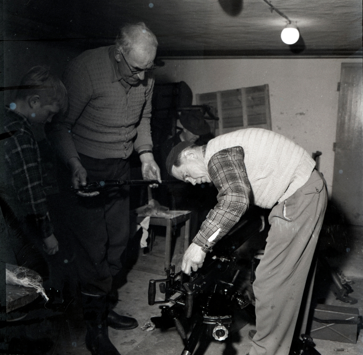 Titel: Hemvärnet på Öland inspekterar kulspruta.