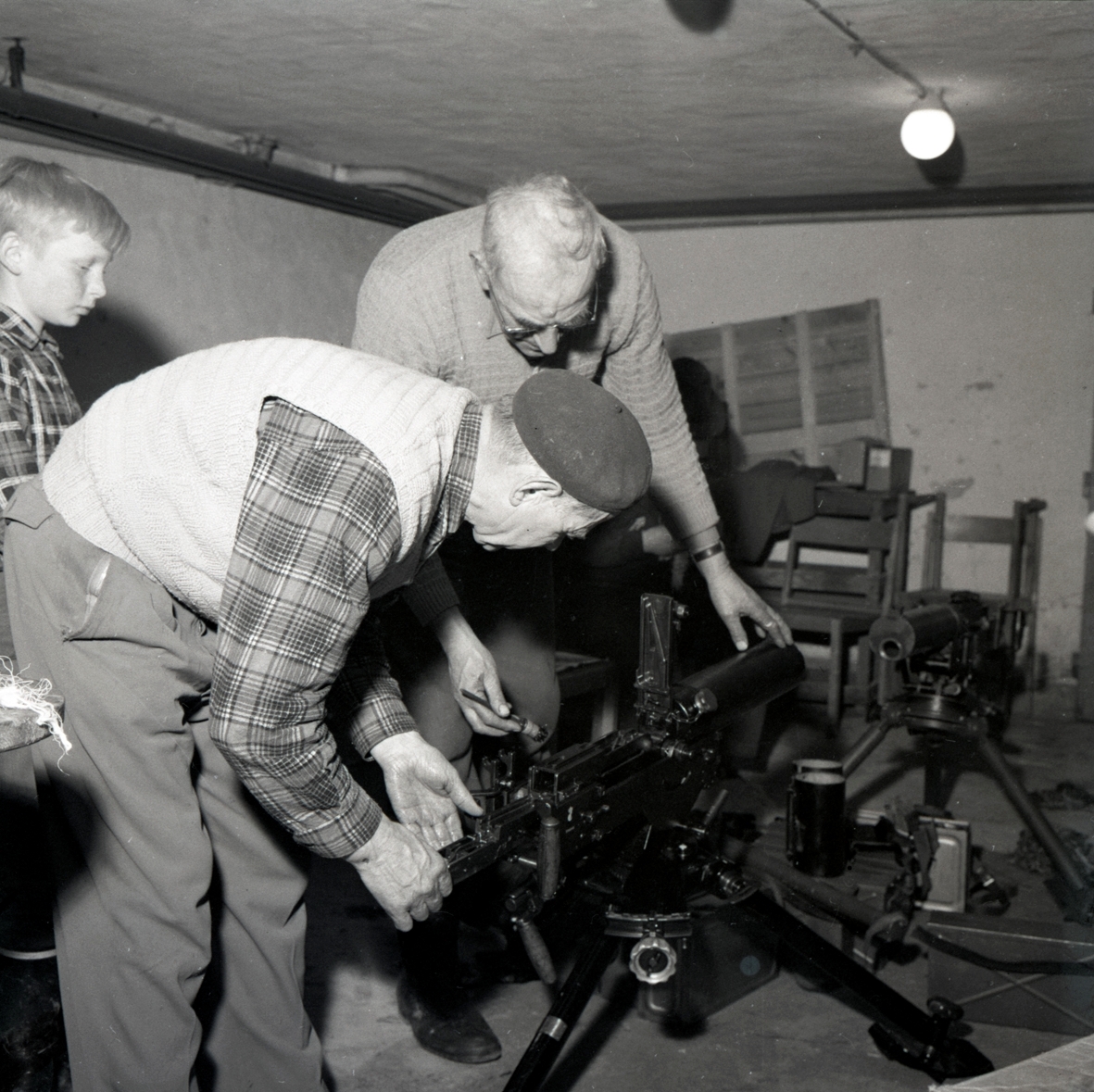Titel: Hemvärnet på Öland inspekterar kulspruta.
