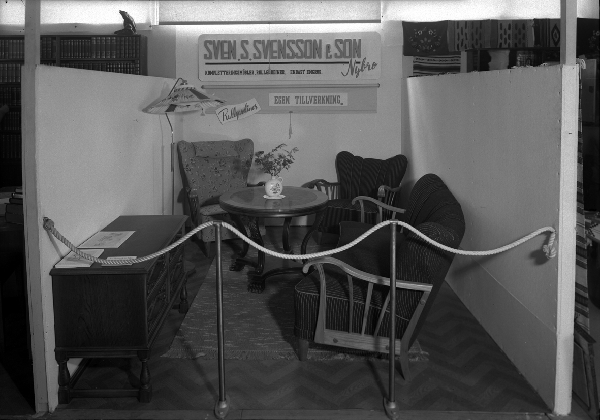 Hantverksutställningen 1947 i Kalmar. Paviljongen för Sven. S. Svensson & Son Nybro. Egentillverknina av Rullgadiner.