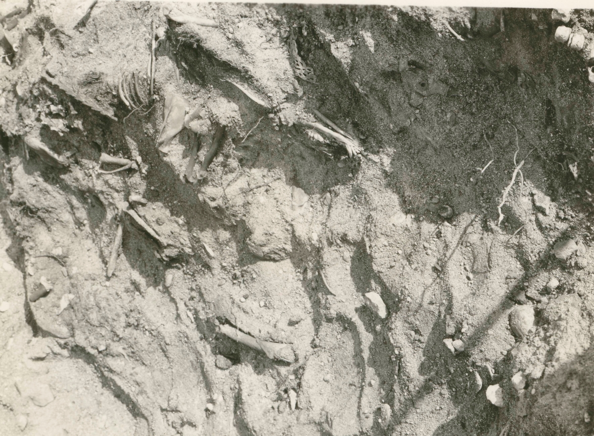 Hundskelett i sydvästra delen av båtgraven.