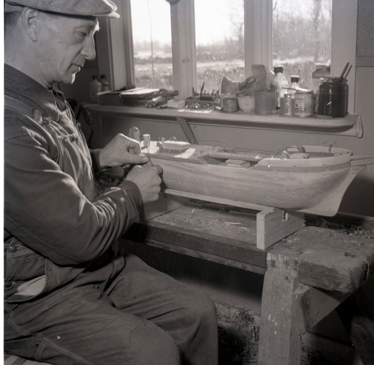 Harry Karlsson i Grönvik gör ett votivskepp till Föra kyrka.