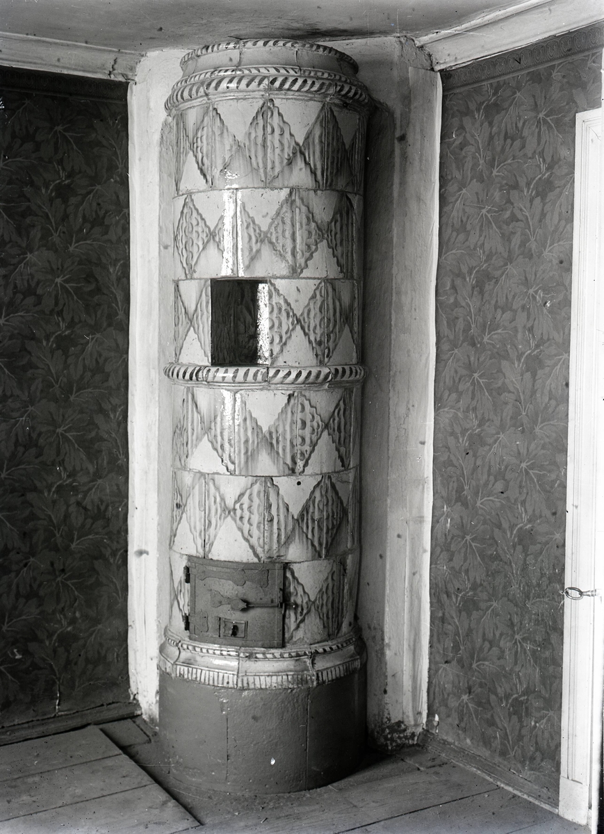 En kakelugn, ursprungligen uppförd på Storgatan 52 i Kalmar.