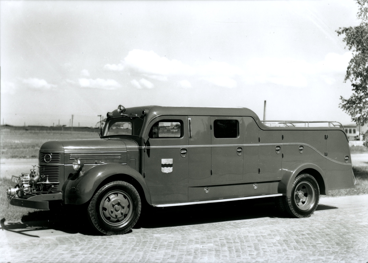 Släckbil (tankbil) med frontpump. Innehöll 800-1000 liter vatten.