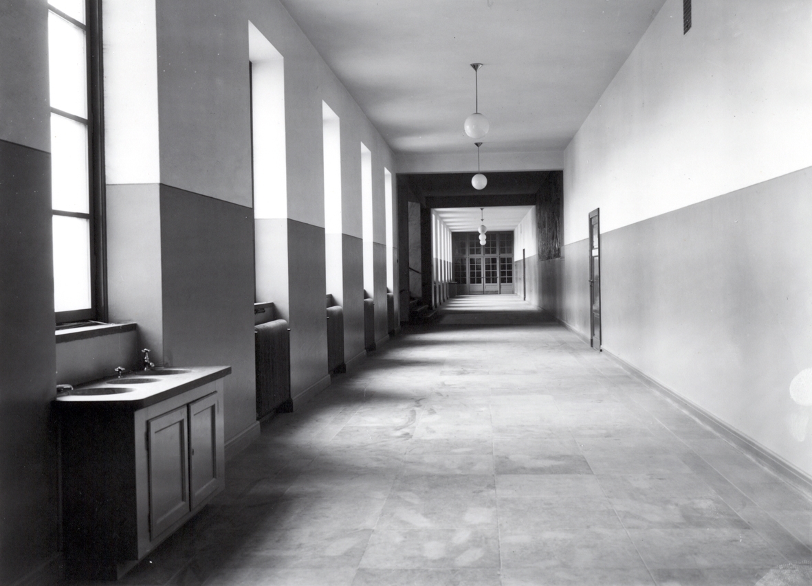 Korridor i Kalmar högre allmänna läroverk, nuvarande Stagneliusskolan.