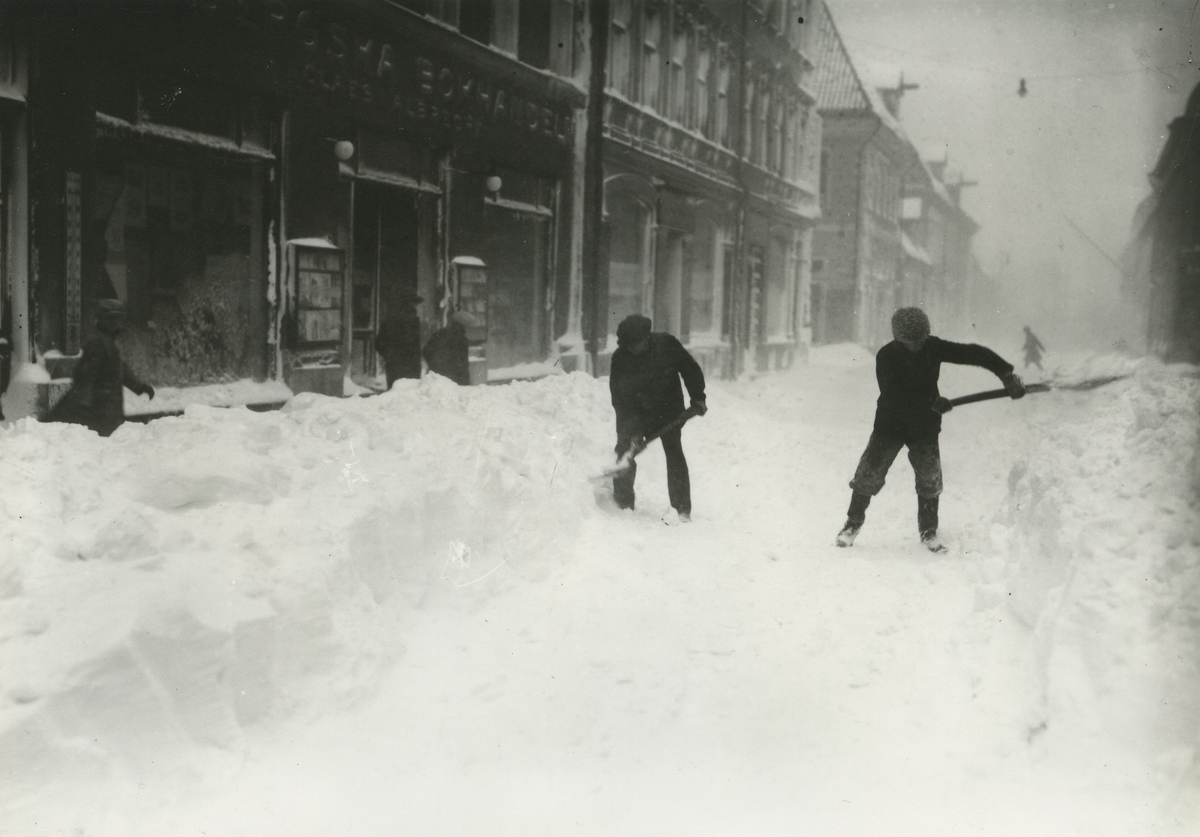 Snöstormen 1 mars 1931. Hörnet Södra Långgatan-Kaggensgatan.
