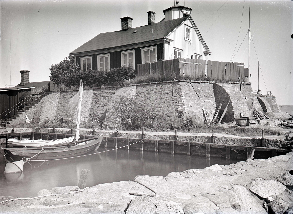 Fyrmästarebostaden på Grimskär. Den vita sydgaveln fungerade som sjömärke.