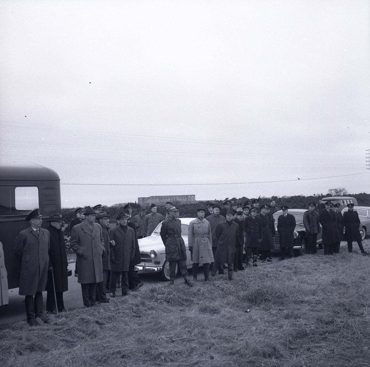 Bild från militärövningen Ölandskriget. Män som står bredvid parkerade fordon i närheten av Borgholms slott.