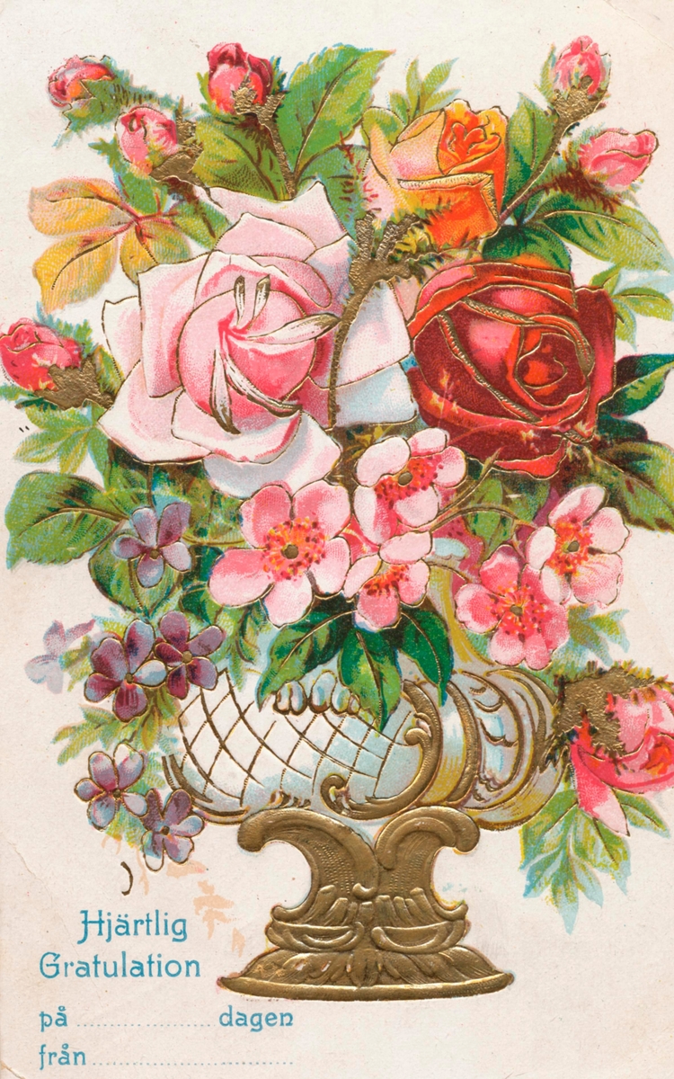 Ett gratulationskort till Kristina Nilsson född Andersson och till Edvard Nilsson i Böda från avsändare i Sverige.