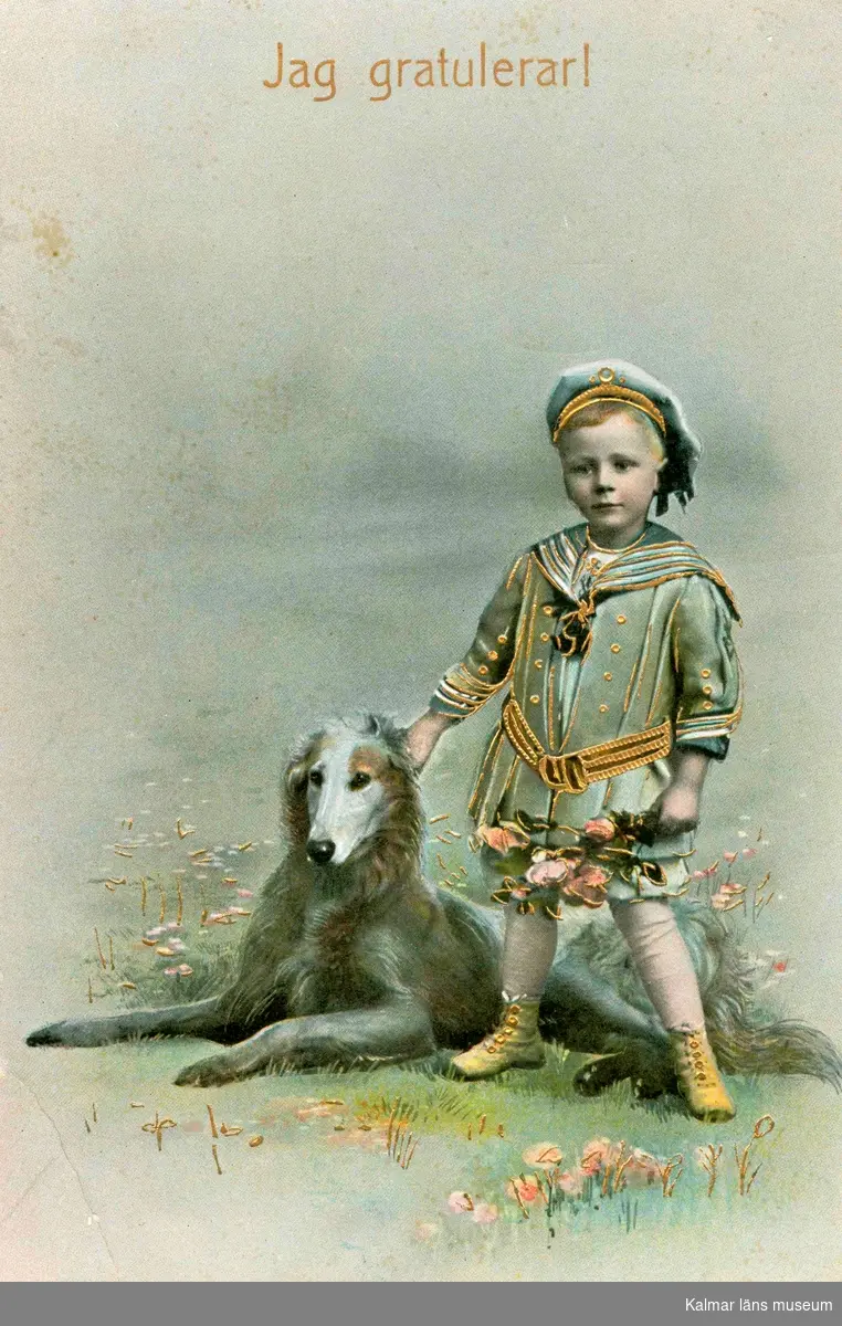 Titel: Ett gratulationskort till Karin Andersson, Odengatan 4 (byggmästare N J Andersson), Kalmar från moster Louise.