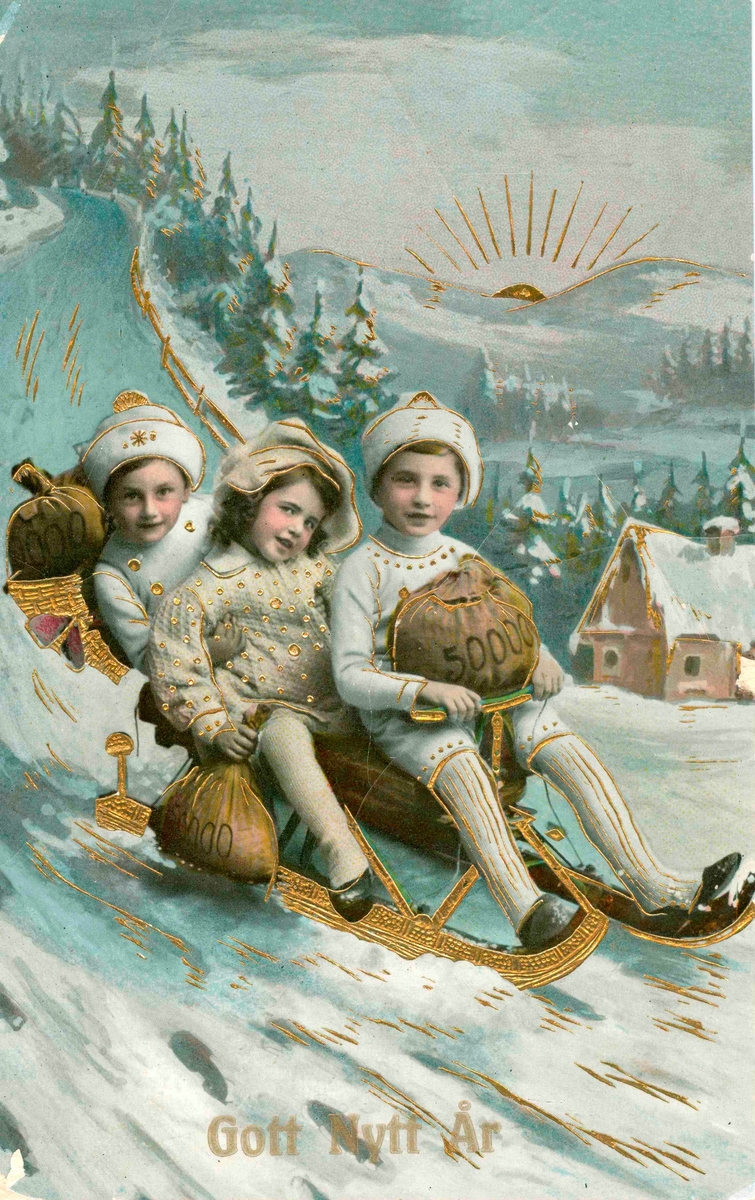Ett nyårskort till Elsa Andersson, Vegagatan 1, Kalmar, från Jenny. Kortet är stämplat i Kristianopel den 31/12 [årtal oläsligt].