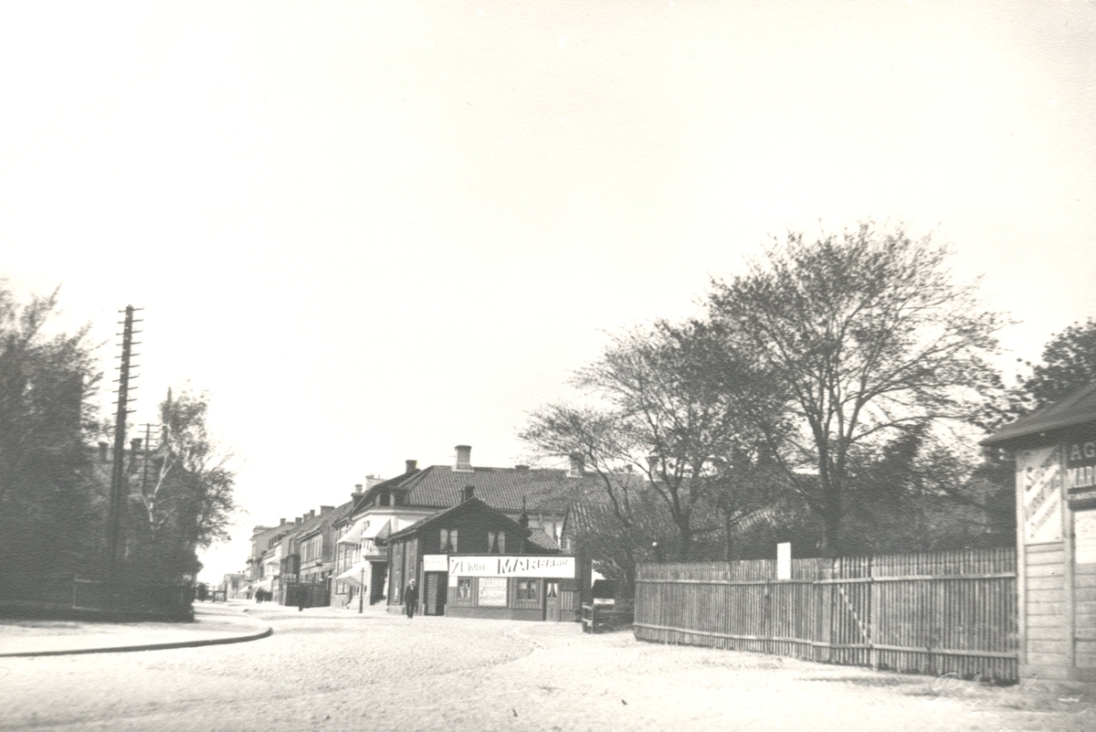 Korsningen Södra Vallgatan - Larmgatan. I fonden ligger idag Odd Fellowhuset.