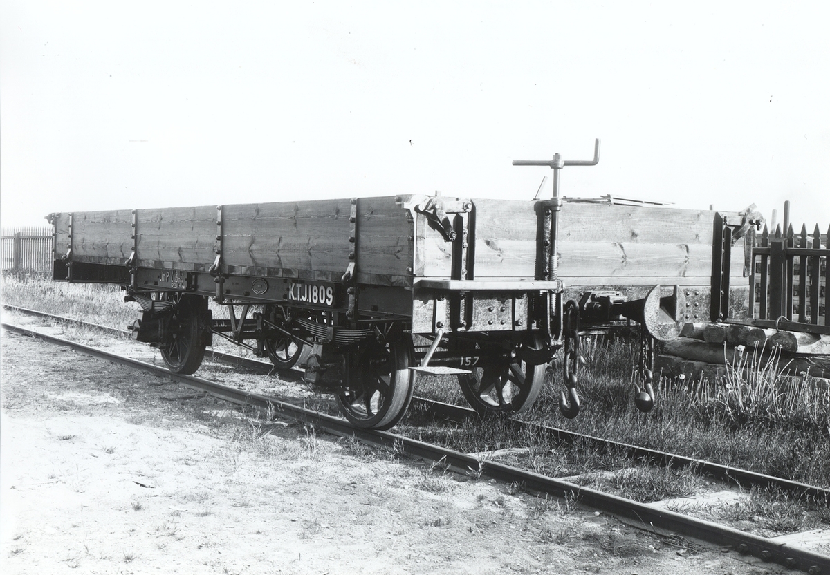 Grusvagn tillverkad av Kalmar verkstads A/B. Kalmar Torsås Järnväg vid Kalmar Västra. Cirka 1920.