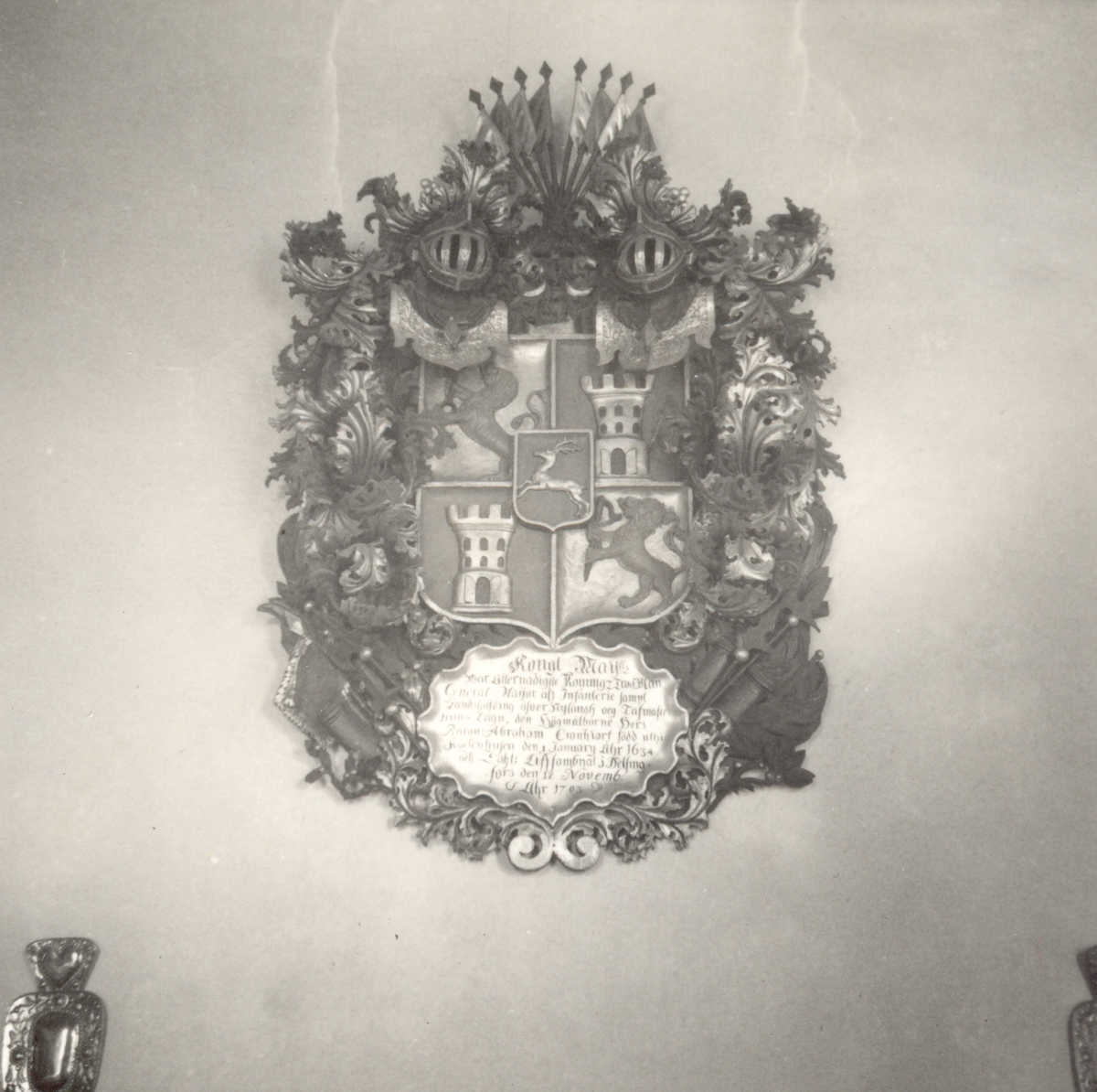 Huvudbanér tillhörande Abraham Cronhjort, friherre till Kläckeberga i Kläckeberga socken, Kalmar. Bilden visar banéret i Kläckeberga kyrka.