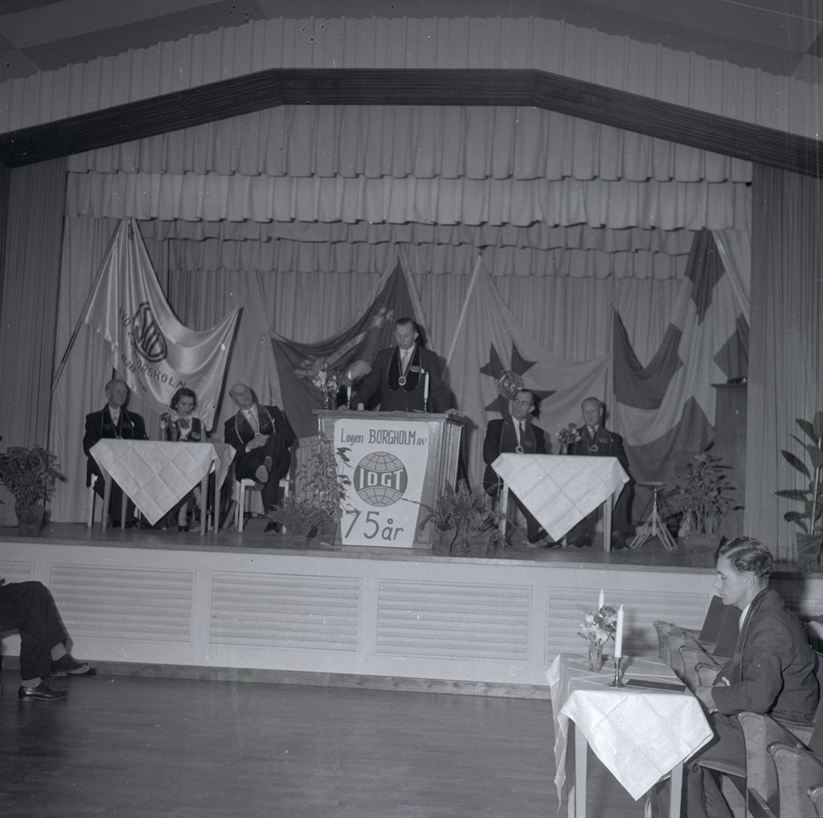 Titel: Invigning av lokalen. Man som håller tal. IOGT-logen 75 år den 16/11 -57.