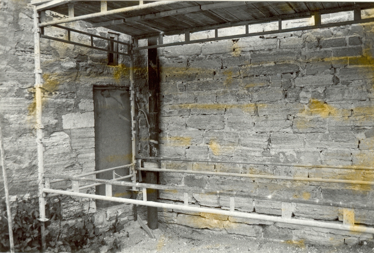 Detaljer under restaurering av västfasadens norra del mellan Kungsmakstornet och Kuretornet.