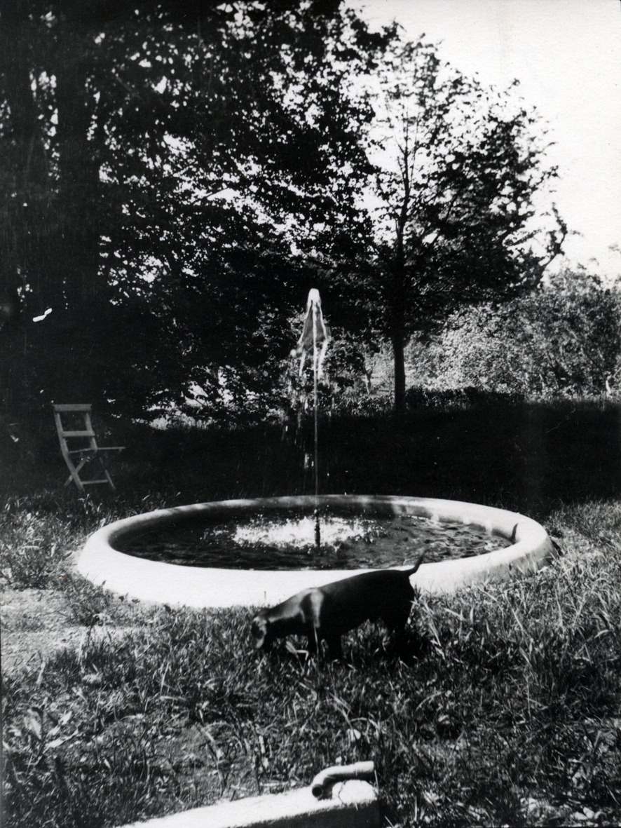 Fontänen och en hund på Tuna gård 1930.