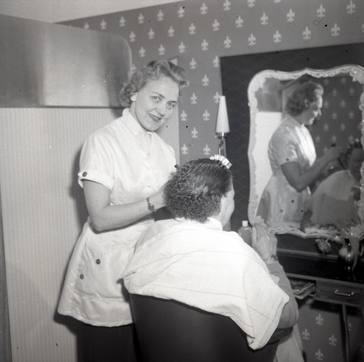 Greta "Eva" Andersson klipper en kund på sin frisersalong på Tullgatan i Borgholm.