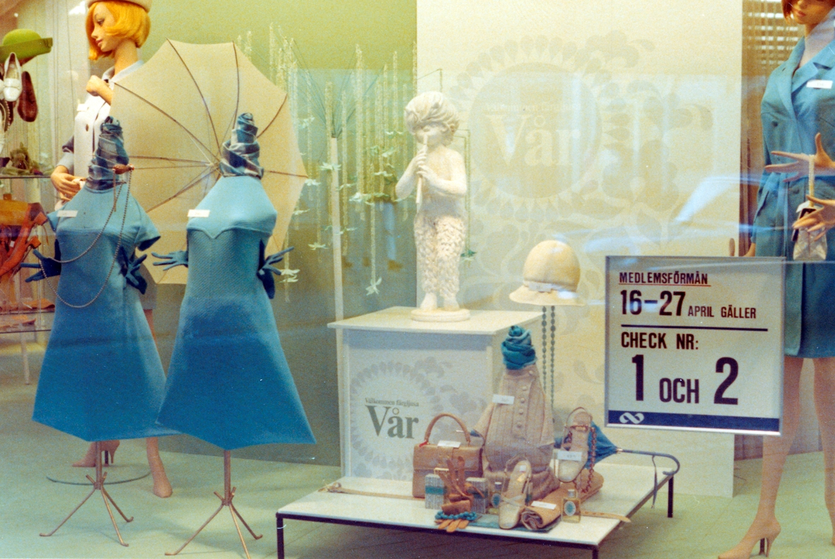 Vårens mode i Domus skyltfönster, i Kalmar, 1968.