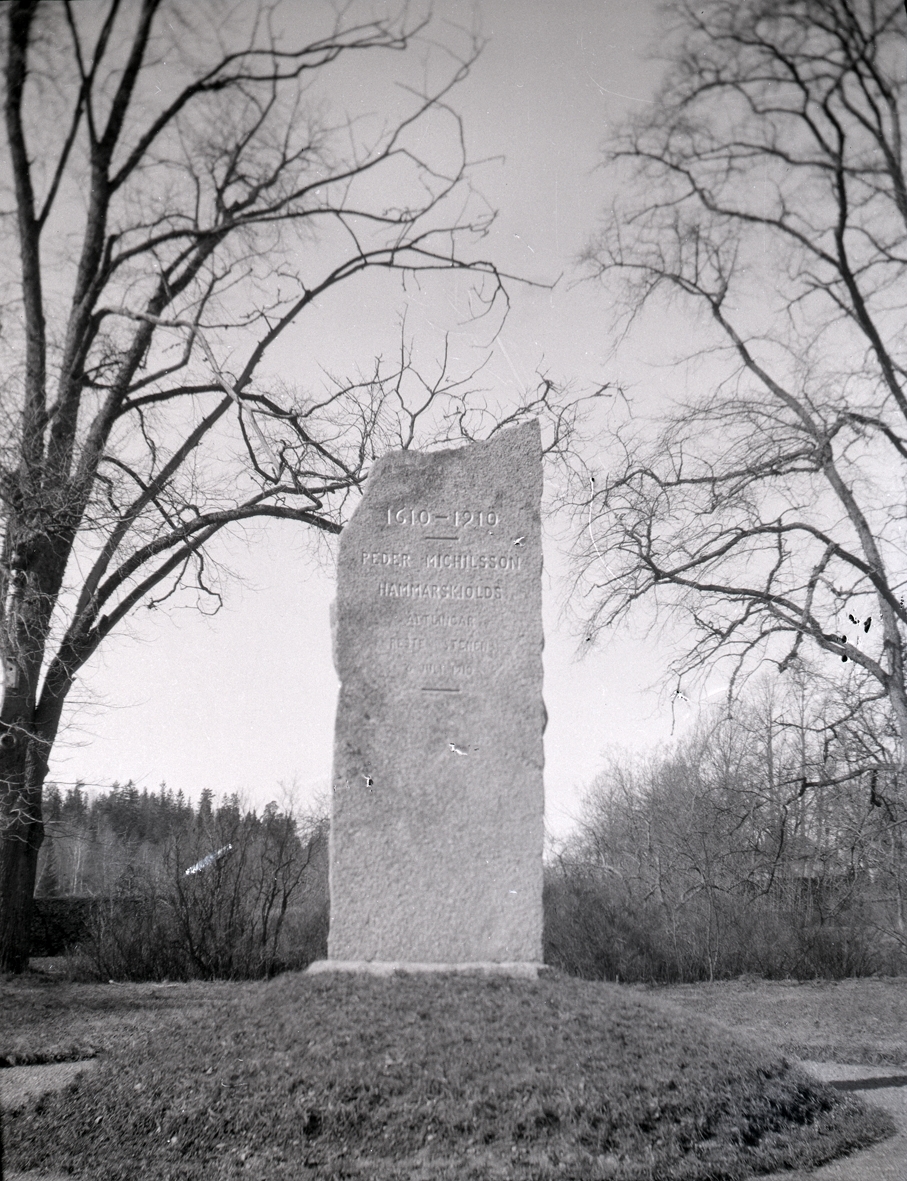 Peder Mikaelssons minnessten. Det är en minnessten över att det var 300 dagar sedan den första Hammarskjöldaren blev adlad.