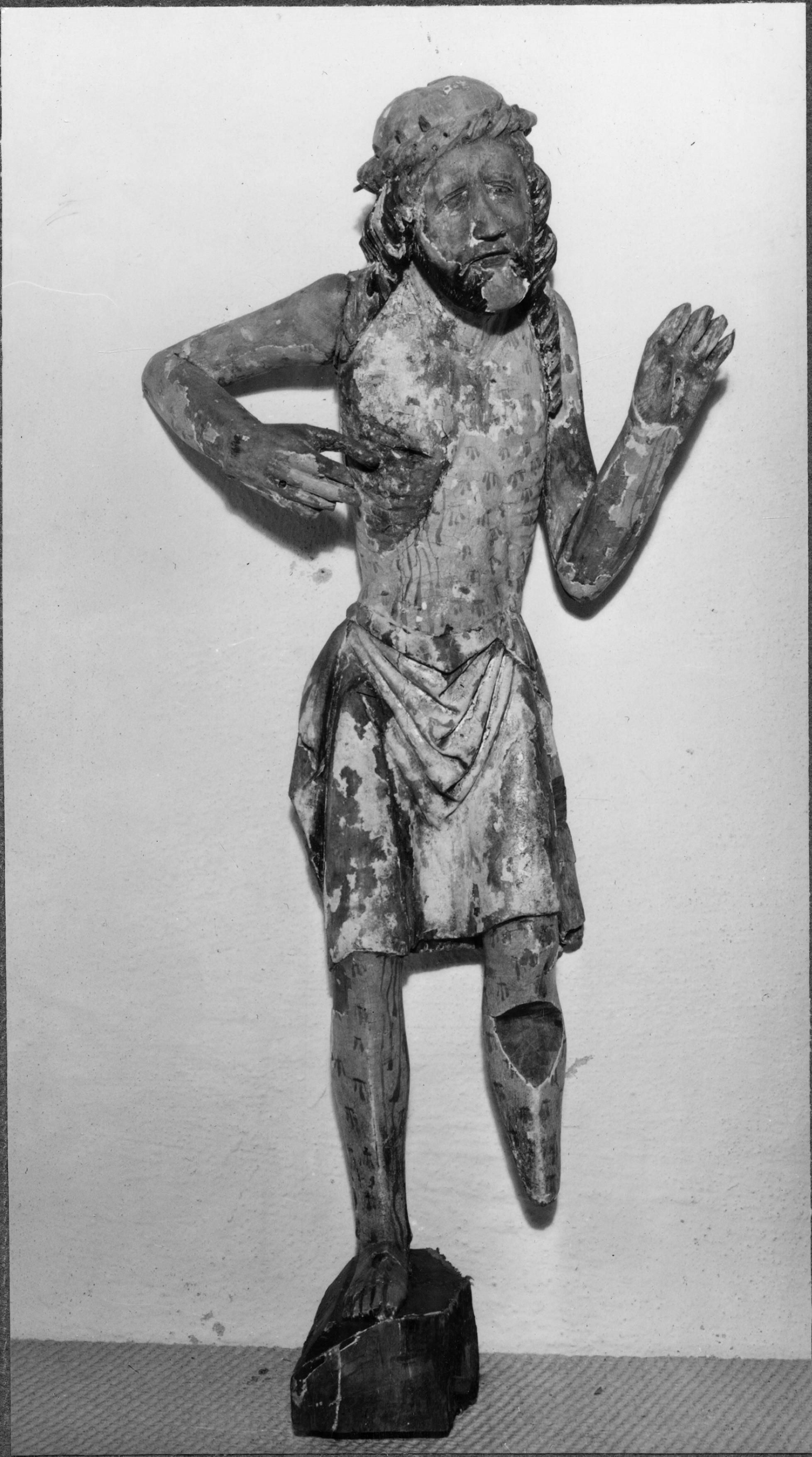 Kristus som smärtornas man, skulptur av björk. Svenskt arbete från 1400-talet.