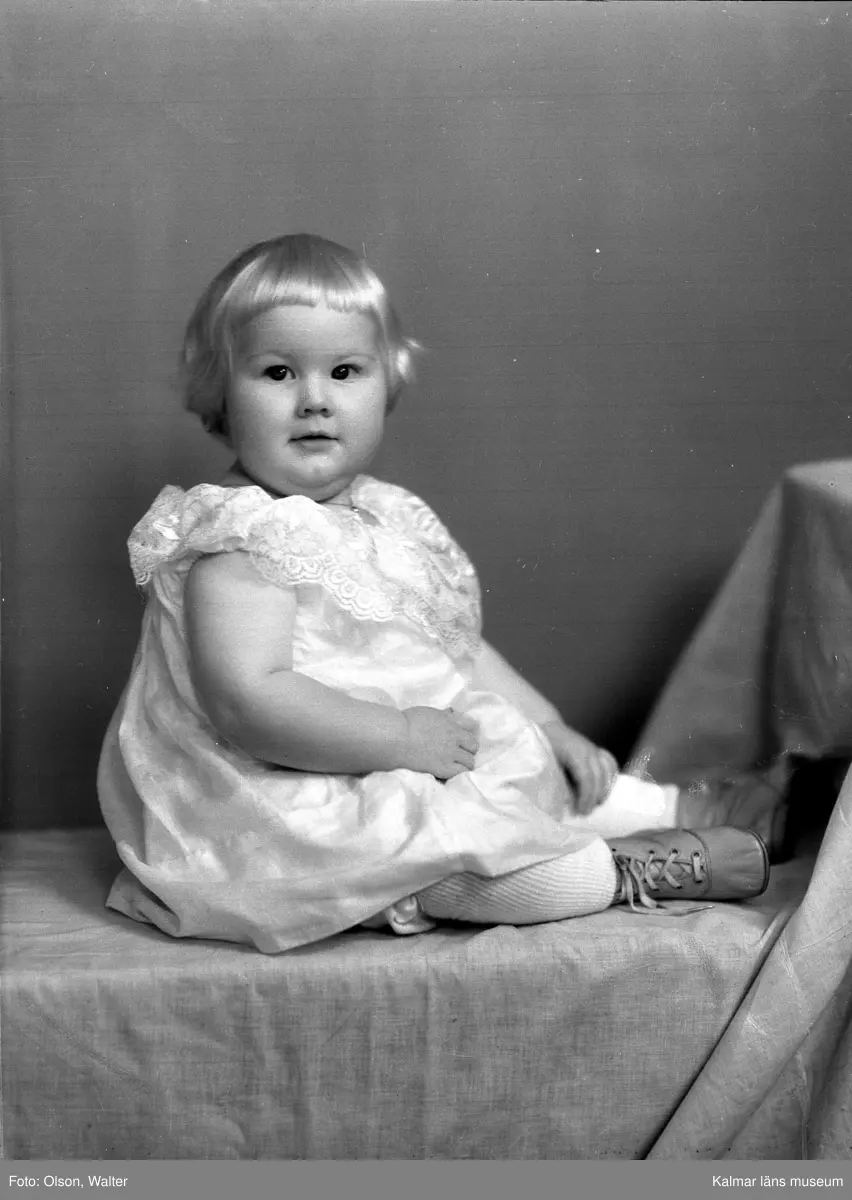 Bild på en liten flicka. Enligt Walter Olsons journal är bilden beställd av tapetserare Ivar Johansson ifrån Sparregatan 27 i Kalmar.